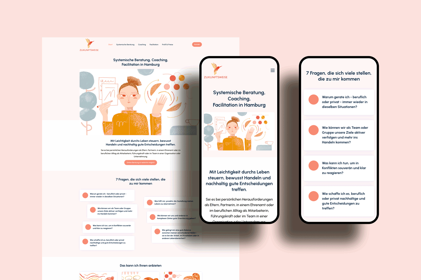 Auftraggeberin Silke Stahn wünschte sich eine Website mit einzigartigem Design. Es war ihr zudem wichtig, dass Ihre Persönlichkeit und Ihre Arbeitsweise wiedererkennbar in der Website integriert wurden.